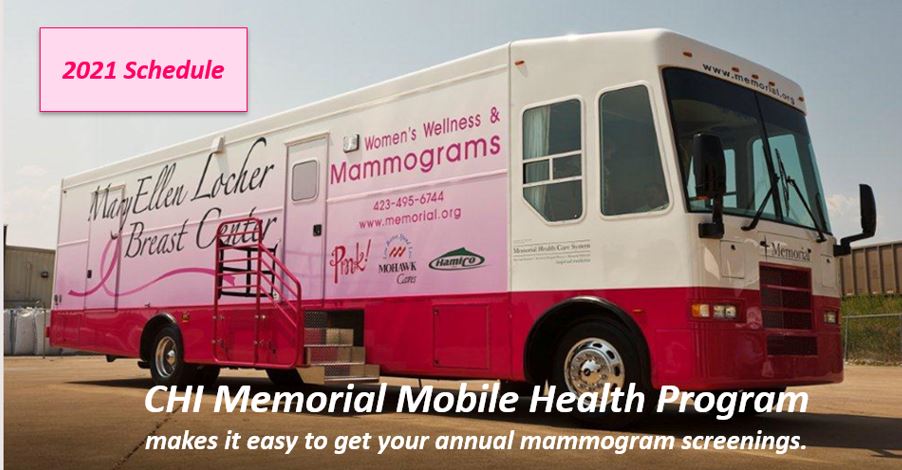 Roper has now made it easier to get screened! There are four dates in 2021 to schedule your mammogram screening @ Roper through a mobile service in partnership with CHI Memorial. For additional details, click here.